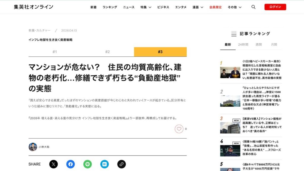 第3回「マンションが危ない?住民の均質高齢化、建物の老朽化…修繕できず朽ちる"負動産地獄"の実態」(2026年4月13日)